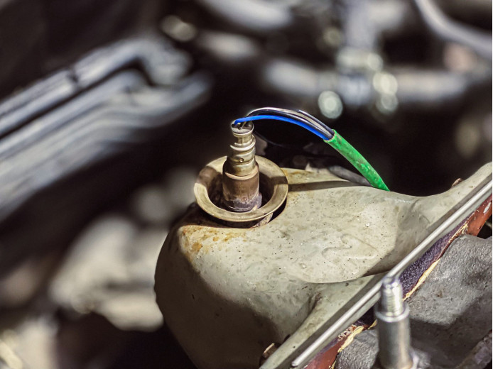 - Найдите и аккуратно выкрутите лямбда-зонд (чаще всего он расположен в выпускном коллекторе или трубе перед катализатором);
