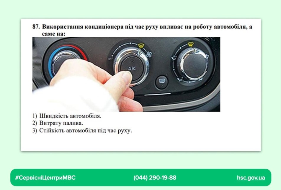 Основи безпечного водіння: змінено питання № 87, де враховано вплив використання кондиціонера на роботу автомобіля.